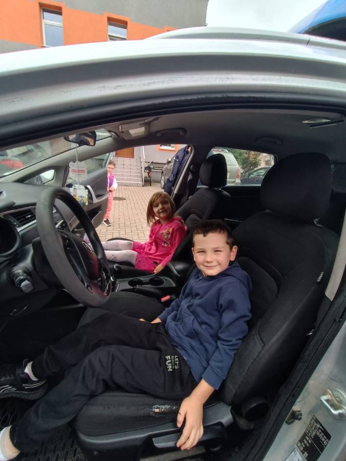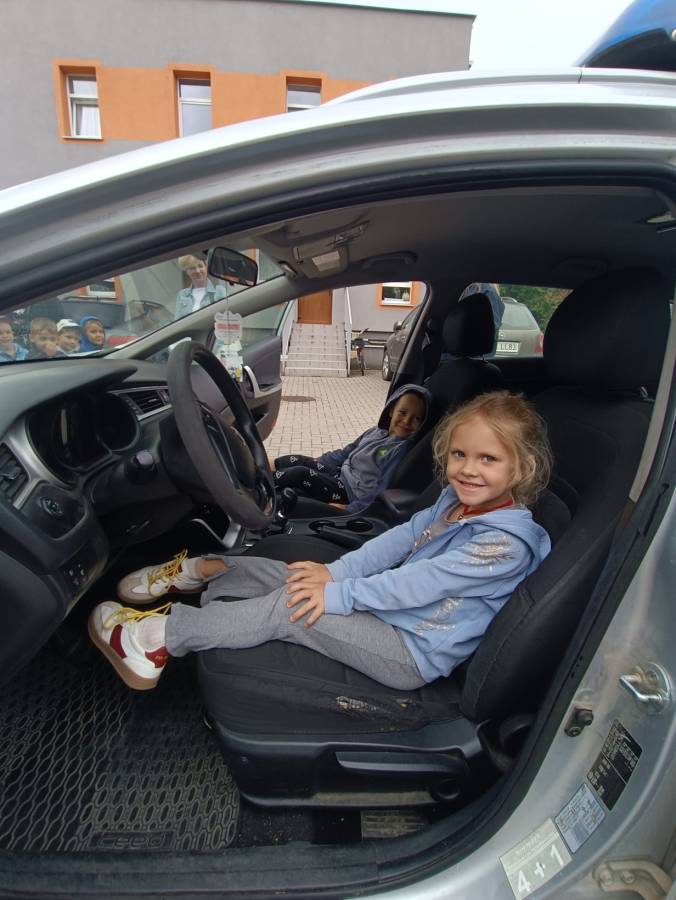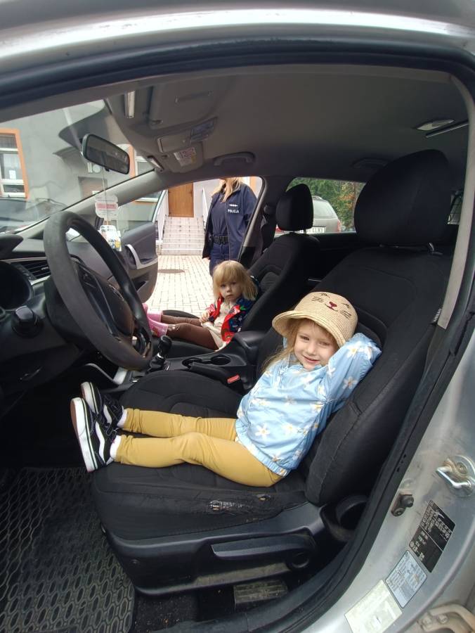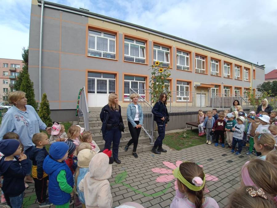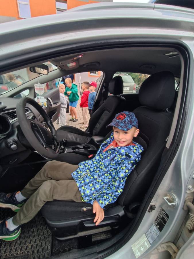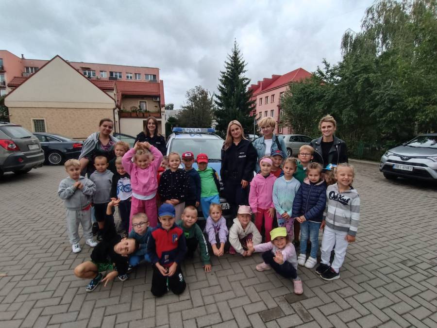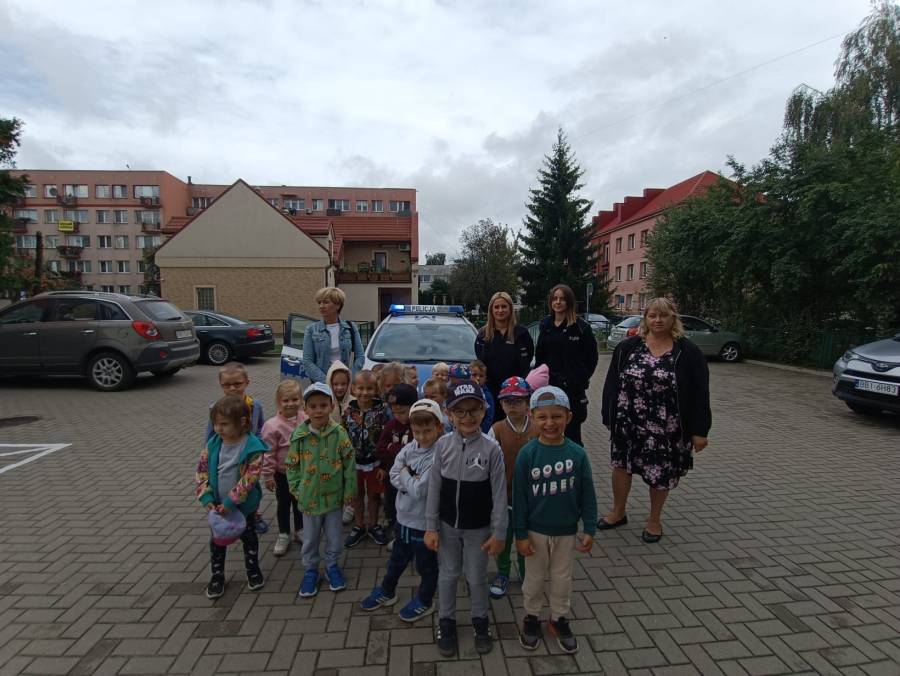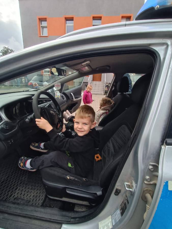 W dniu 15.09.2025r. w naszym przedszkolu odbyło się spotkanie z funkcjonariuszkami Komendy Powiatowej Policji. Dowiedzieliśmy się o zasadach ruchu drogowego oraz jak bezpiecznie zachowywać się w trakcie spacerów i wycieczek. Dzieci miały możliwość również wsiąść do radiowozu i zobaczyć jak wygląda od środka. Bardzo dziękujemy za poświęcony czas oraz przekazaną wiedzę!
