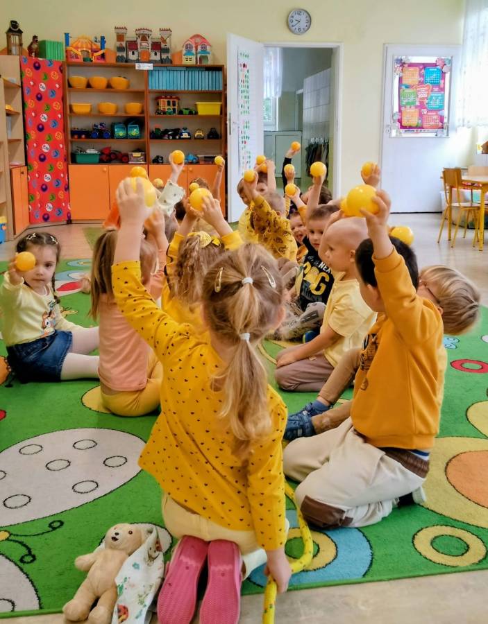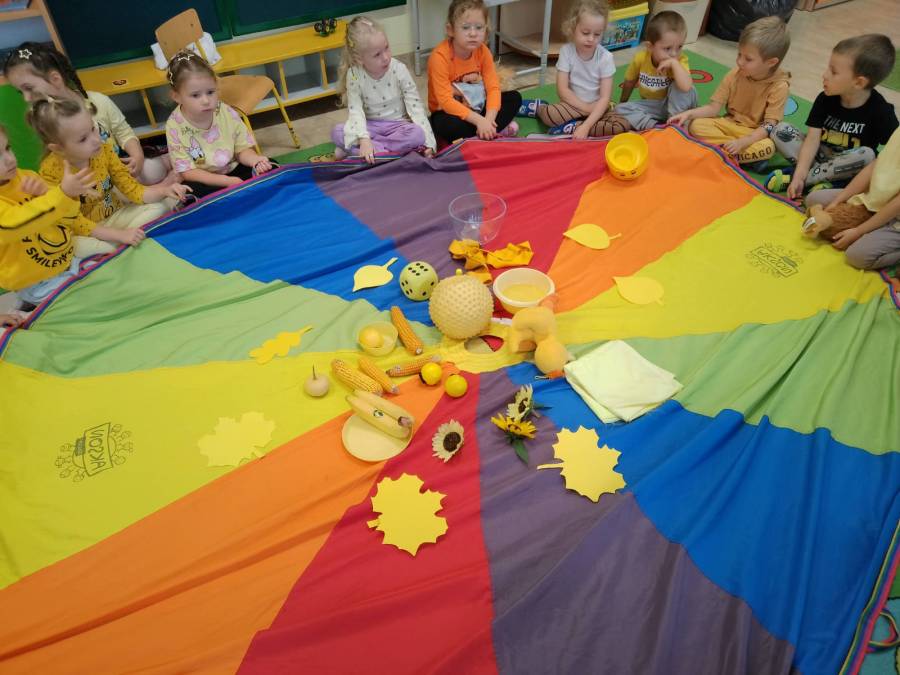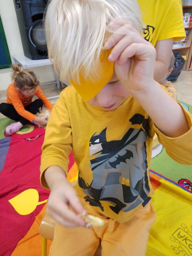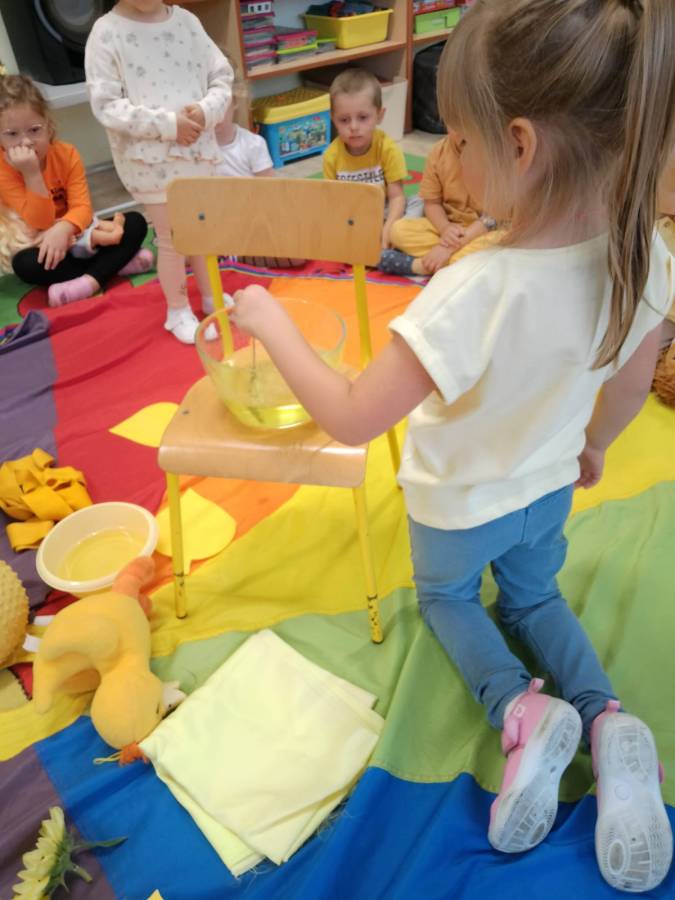 Projekt edukacyjny,, Sensoryczna tęcza '' - grupa Wiewiórki zrealizowała kolor żółty