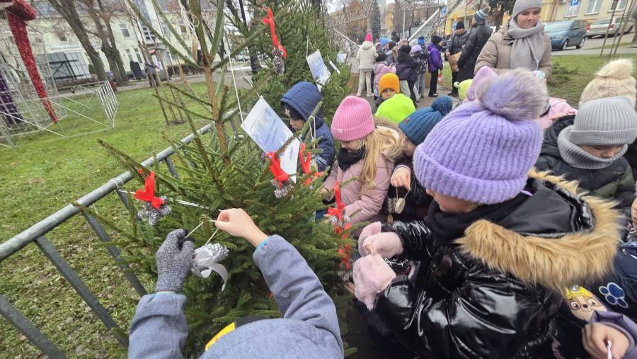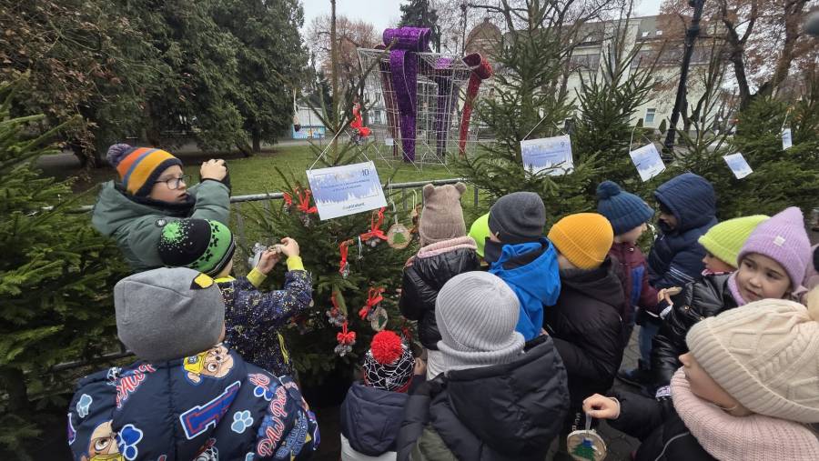 Ubieranie choinki w Parku Królowej Heleny- grupa Krasnale