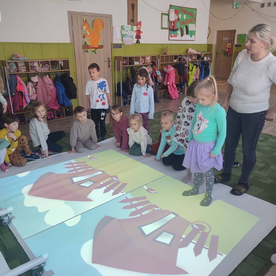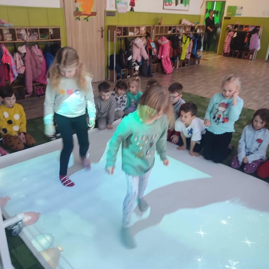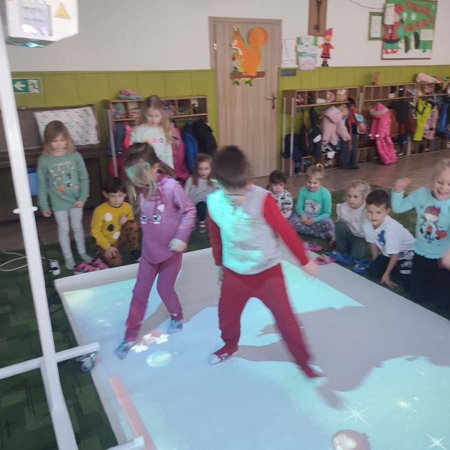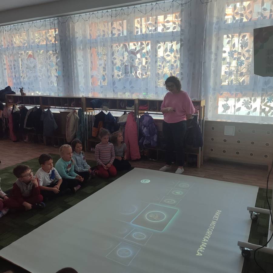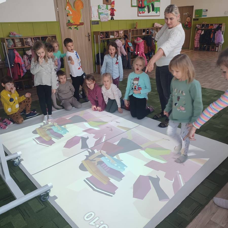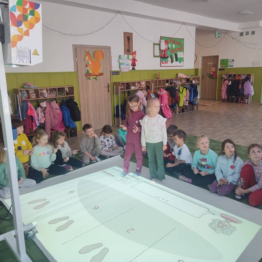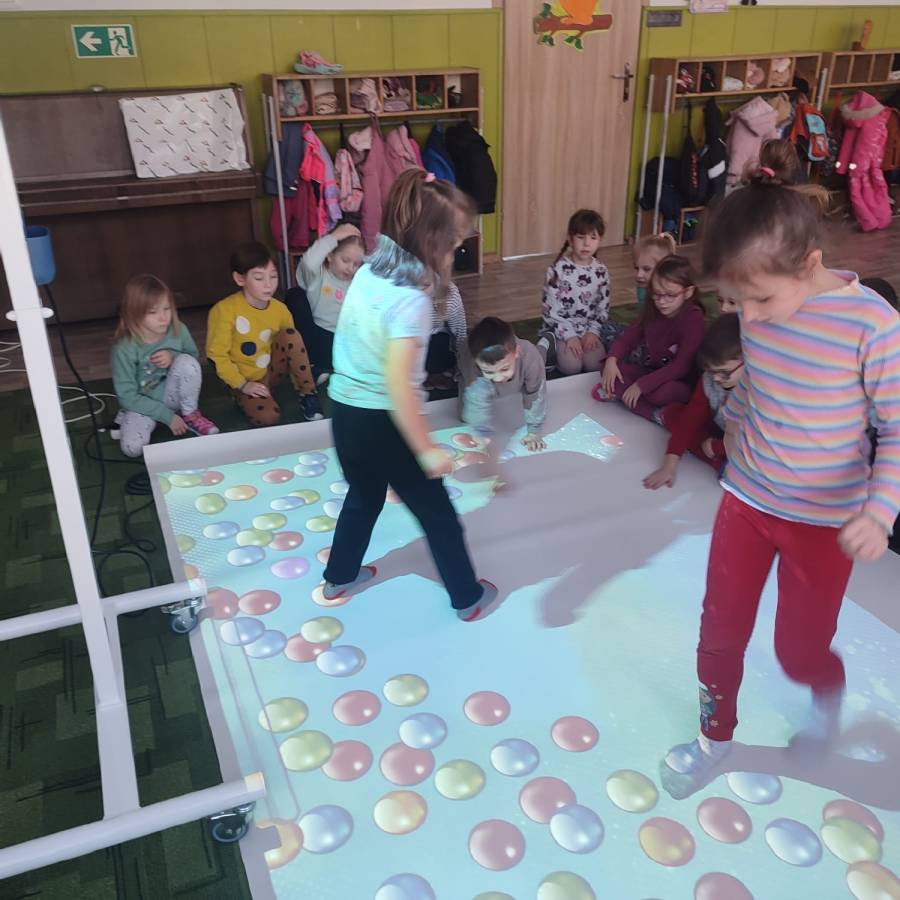 W ramach realizacji rządowego programu Cyfrowy Uczeń do Przedszkola zakupiliśmy interaktywną mobilną podłogę, która jest doskonałym rozwiązaniem wspomagającym naukę. FUN FLOOR to innowacyjny system interaktywnego dywanu, który łączy w sobie technologię, edukację i rozrywkę. Dzieci z grupy Króliczki (jako starszaki) przetestowały urządzenie ucząc się i bawiąc jednocześnie.