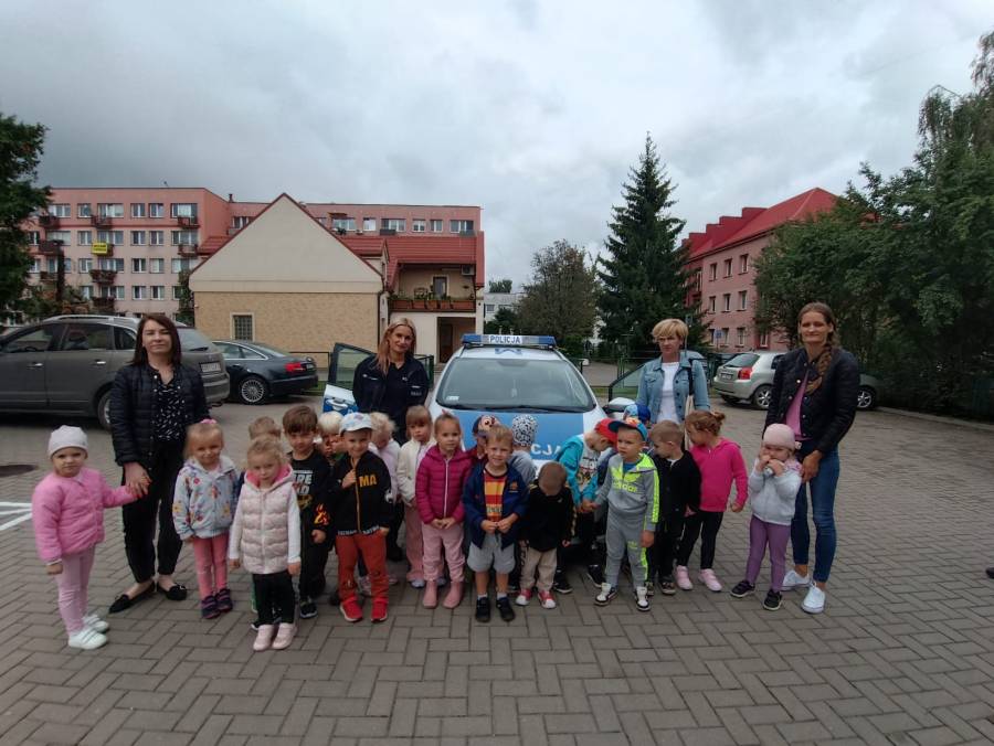W dniu 15.09.2025r. w naszym przedszkolu odbyło się spotkanie z funkcjonariuszkami Komendy Powiatowej Policji. Dowiedzieliśmy się o zasadach ruchu drogowego oraz jak bezpiecznie zachowywać się w trakcie spacerów i wycieczek. Dzieci miały możliwość również wsiąść do radiowozu i zobaczyć jak wygląda od środka. Bardzo dziękujemy za poświęcony czas oraz przekazaną wiedzę!