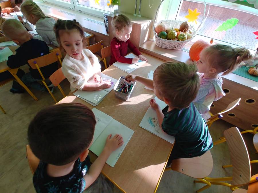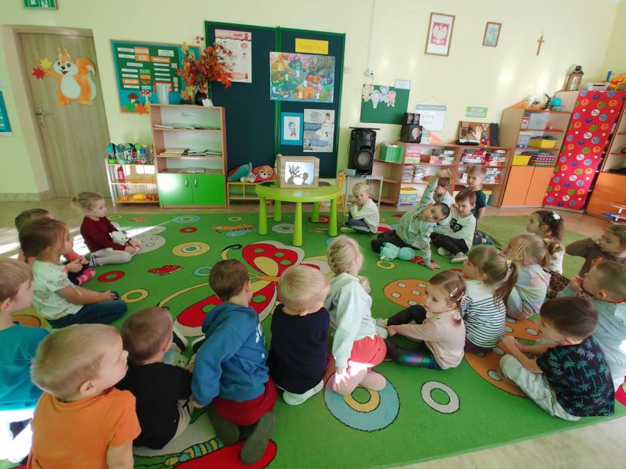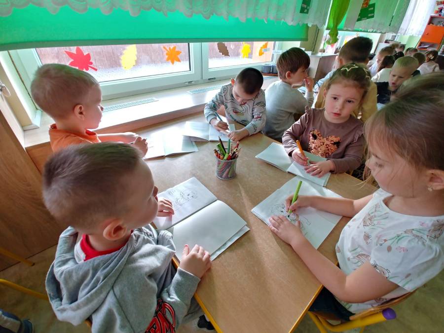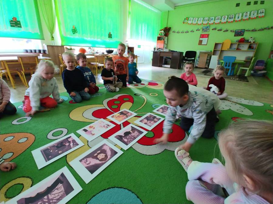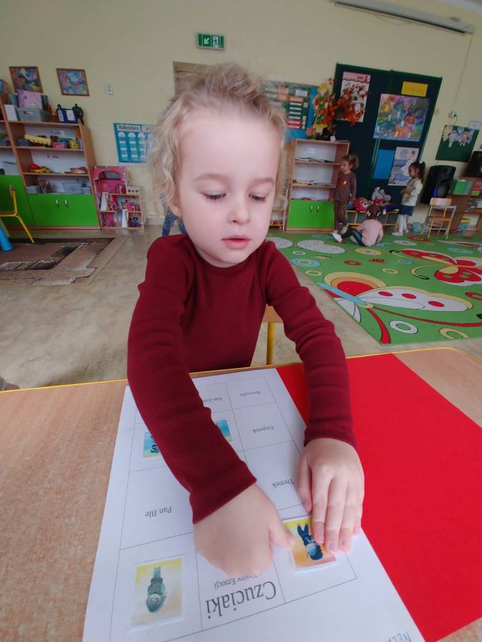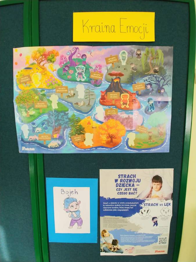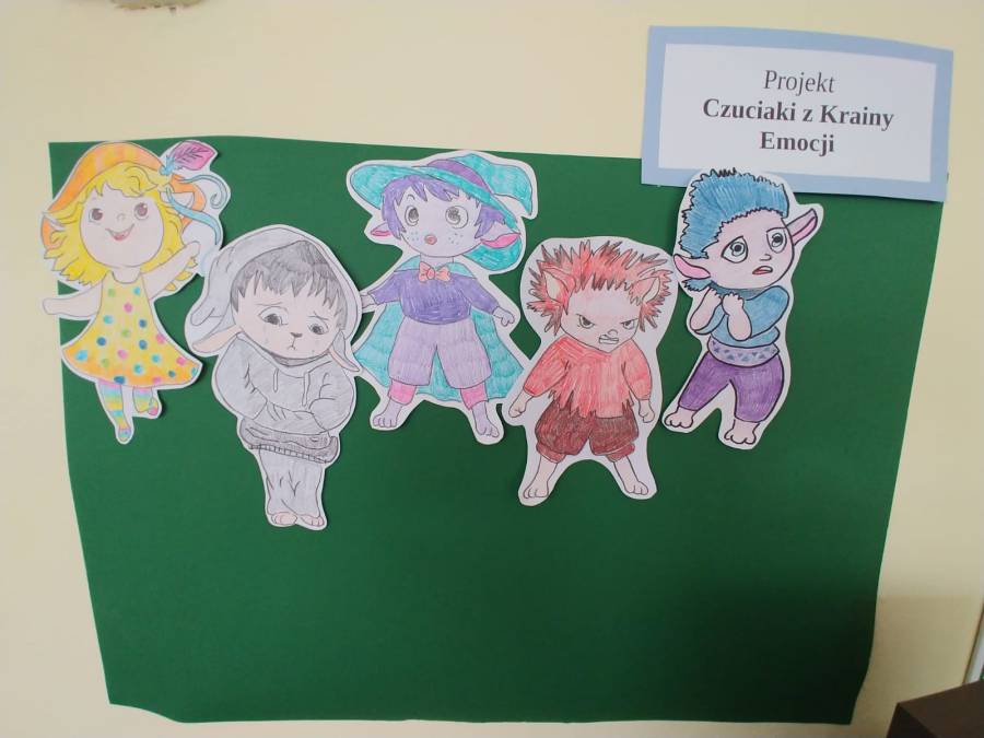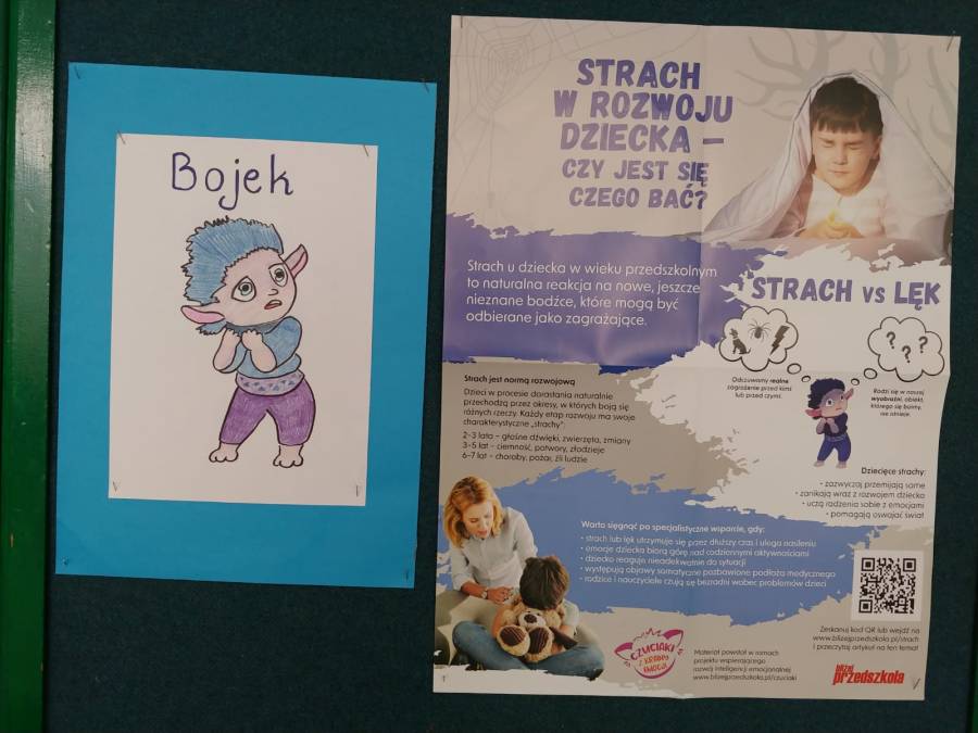 Dzieci z grupy Wiewiórki poznały kolejną postać z projektu: ,,Czuciaki z Krainy Emocji,,. Poznały- Bojka z Wyspy Strachu. Wspólnie z nauczycielką wysłuchały i obejrzały piosenkę o Czuciakach, odczytały opowiadanie o głównym bohaterze i jego przygodach. Miały możliwość rozmowy na temat definicji: strachu. Opowiadały o swoich przygodach związanych ze strachem. Rozpoznawały podczas zabawy z bibułą nastrój wysłuchanego utworu. Mogły obejrzeć przygotowany przez nauczyciela teatrzyk cieni z bajki: ,, Brzydkie kaczątko,,. Wykonały zadania przygotowane przez Bojka: pokolorowały jego postać i narysowały to czego najbardziej sie boją. Ostatnim zadaniem związanym z głównym bohaterem było wklejenie Czuciaka do książeczki, umieszczenie postaci Bojka na Wyspie Strachu i doklejenie jego postaci do reszty Czuciakowej rodziny.